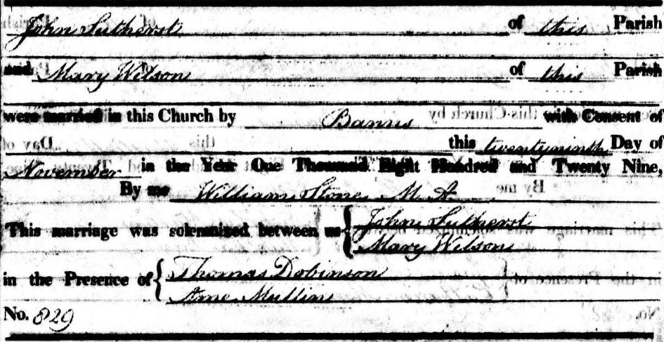 Mary Wilson, born 27 Feb 1804, Piercebridge, Co. Durham