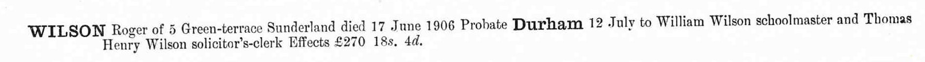 Roger George. WILSON Son Male 5 Sunderland Scholar