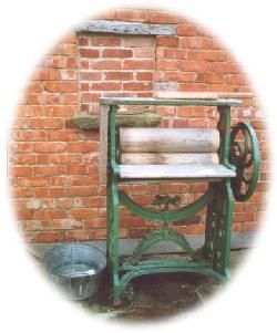 Going back to "The Copper", it had one more use. It was a primitive washing-machine. We used to stuff all our clothes and towels etc into the copper, fill it with cold water then light the gas under it. Add some washing-powder then sit down for an hour or so, occasionally stirring the clothes with an old stick. Once the clothes were 'done' we would have to carefully pull them out (that water was HOT!) and begin the process of drying them. First off was to put them through the 'mangle'. This was a machine consisting of a turning handle which turned two wooden rollers. Each article of clothing or towel etc was fed between the two rollers and the handle turned so the rollers would SQUEEZE out the moisture, before we then took the clothes and hung them on the outside clothes-line using pegs for the wind to dry them.
